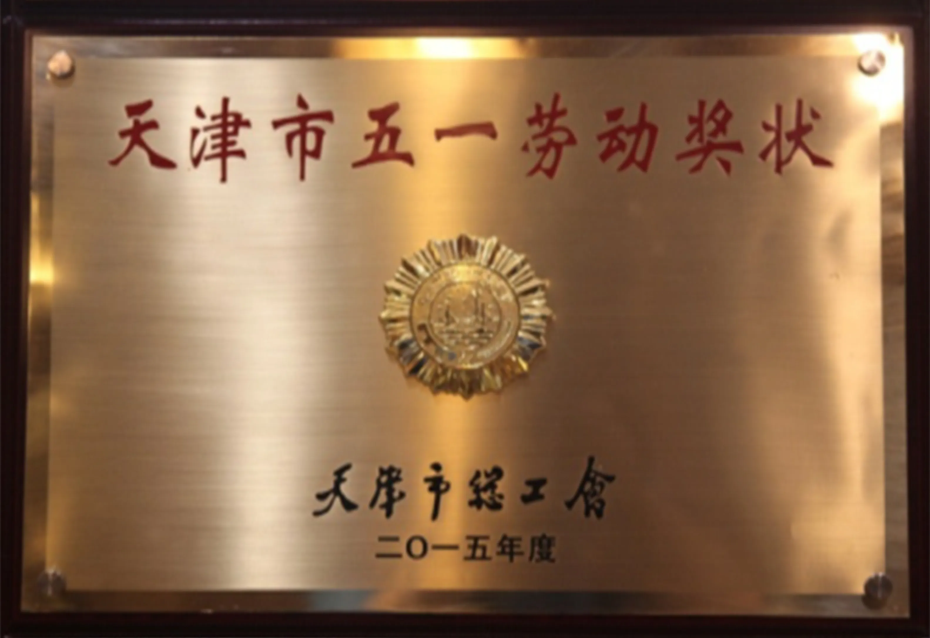 2015年获得天津市五一劳动奖状