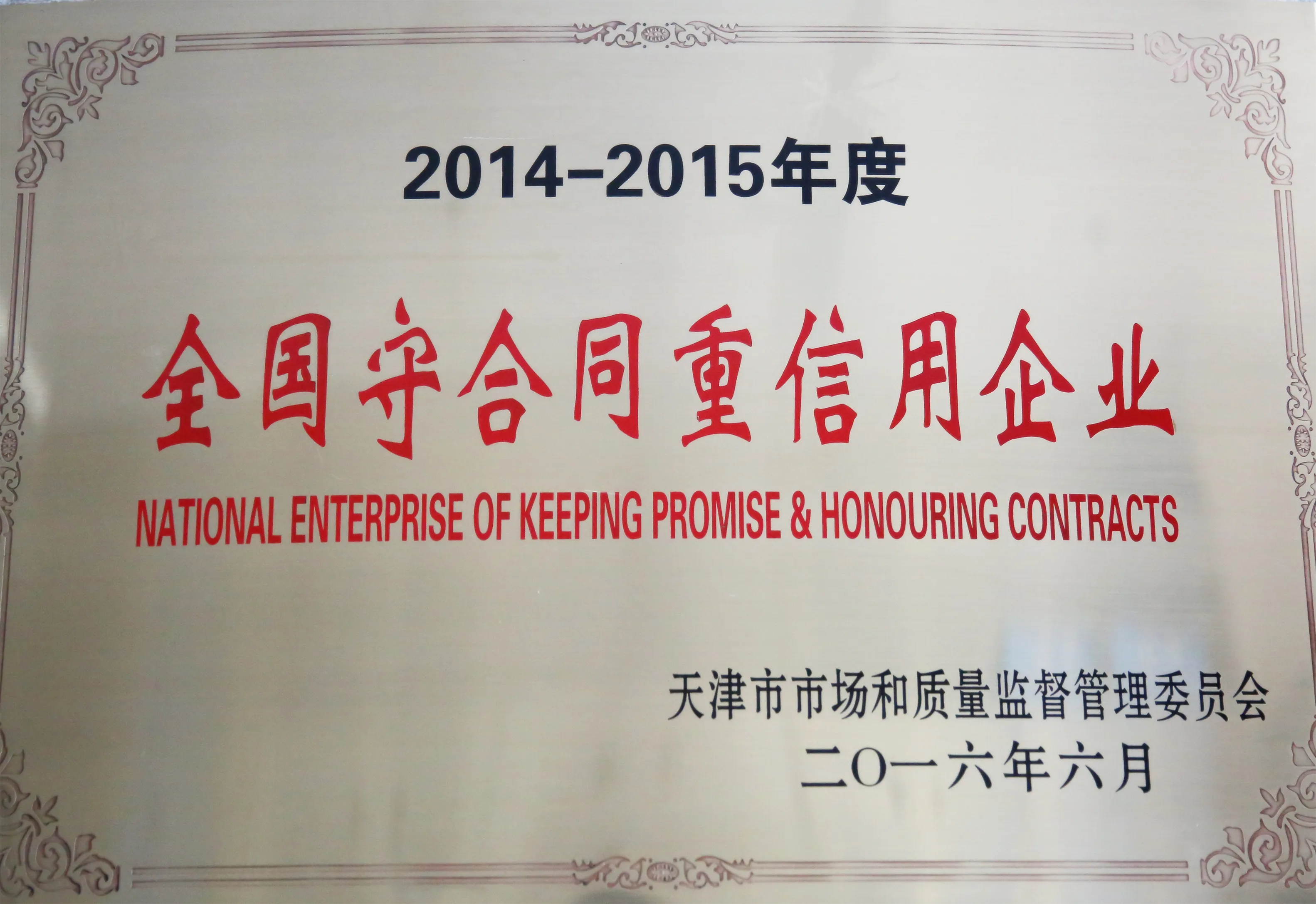 获得全国守合同重信用企业